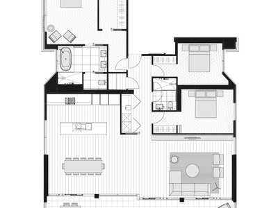 The apartments are designed with open-plan living and dining rooms that allow for natural light and indoor/ outdoor living rooms cater for privacy and flexibility.